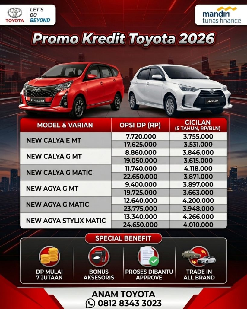 Supaya tetap Instant dan praktis, Hubungi Anam Toyota untuk mendapatkan info seputar Promo Menarik dan Hadiah Spesial untuk pemesanan kendaraan melalui website ini.